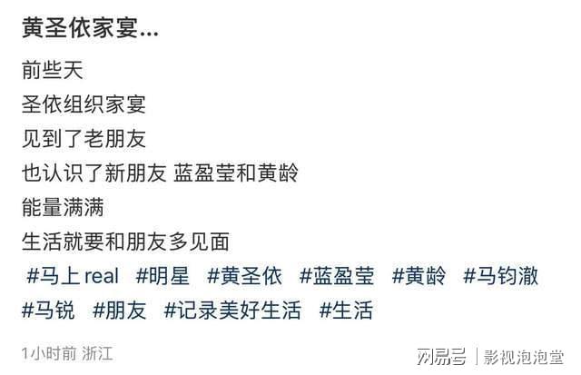 好家伙,黄圣依最近又在上海那豪宅里搞家宴了,听说场面那叫一个热闹。她那个明星化妆师朋友马锐特意在社交平台上晒了照片,说是前些天参加的,来的都是黄圣依的同学和老朋友,还特意提到了蓝盈莹黄龄也来了,说是什么“能量满满”,看来这聚会挺嗨的。