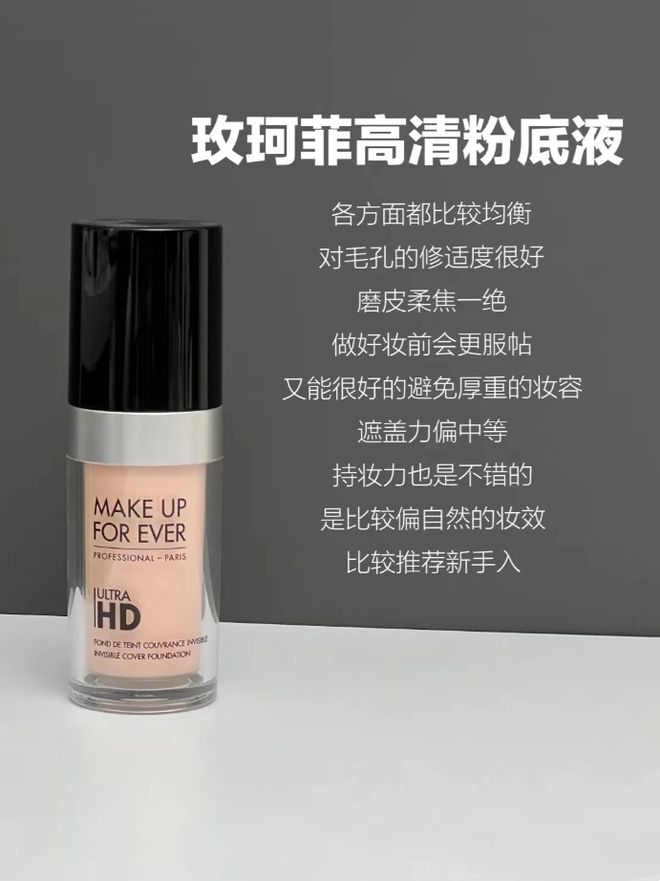 玫珂菲得底妆产品给我一种妈生好皮感,平时出门拍照我就喜欢用这款。这款是专门为高清摄像头下,设计的无痕粉底,挤出来是清爽不油腻的粉底质地。