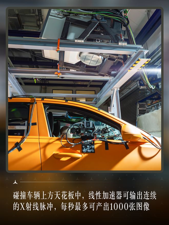 另外,现在奔驰还在使用 X 射线脉冲,将碰撞时车辆和假人内部结构实时可视化,每秒 1000 张图像,让以前不可见的形变和过程变得透明。
