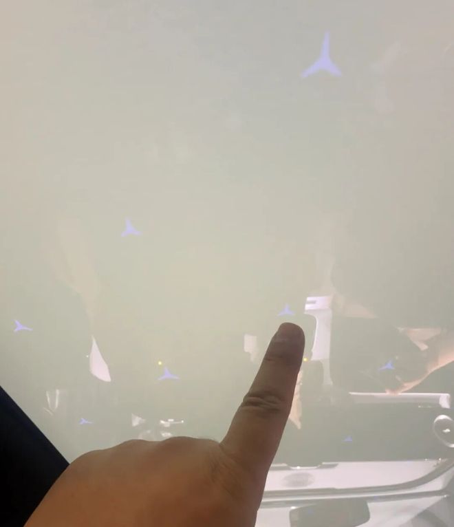 先说光,纯电 GLC 有一个很特别的设计。如上图,就是它的天幕,有很多三叉戟的星徽标志。