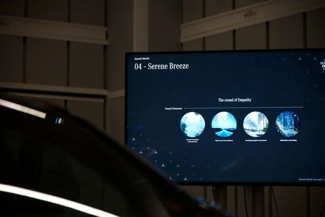 到了辛德芬根工厂的声学实验室,奔驰总部的德国工程师向我们展示了纯电 GLC 座舱的十余种个性化主题。