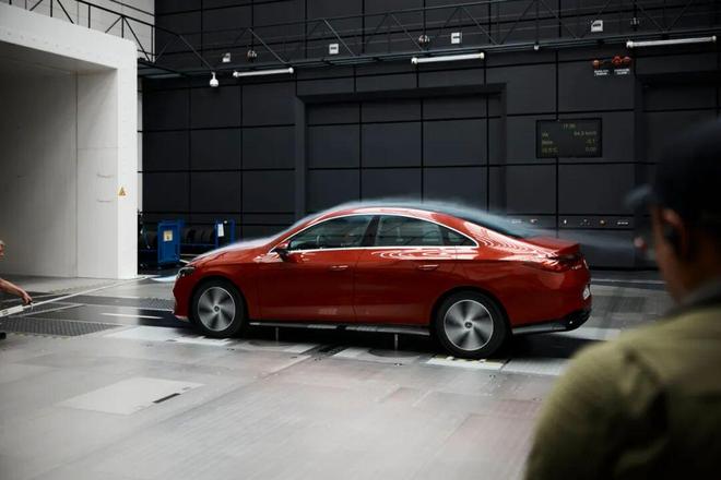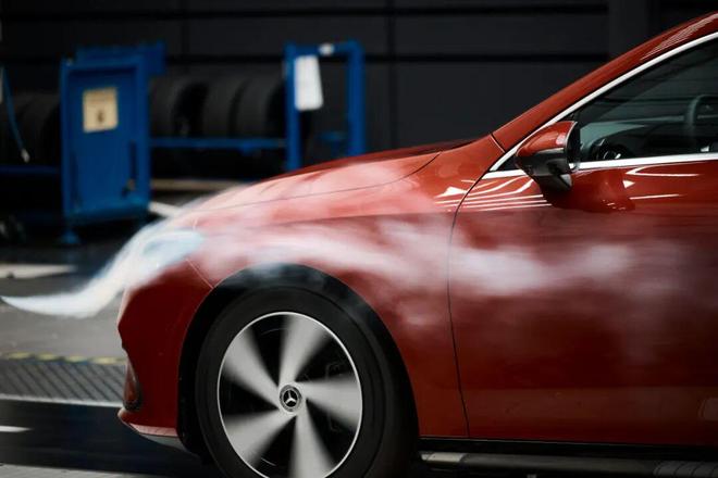 在参观的最后一个环节。奔驰的工程师拿出了吹风机,但风速逐步攀升,风线沿着前舱机盖形成一条弧线;在车轮、车底被打算,在侧面形成流体时。严谨两个词,突然被具象了。