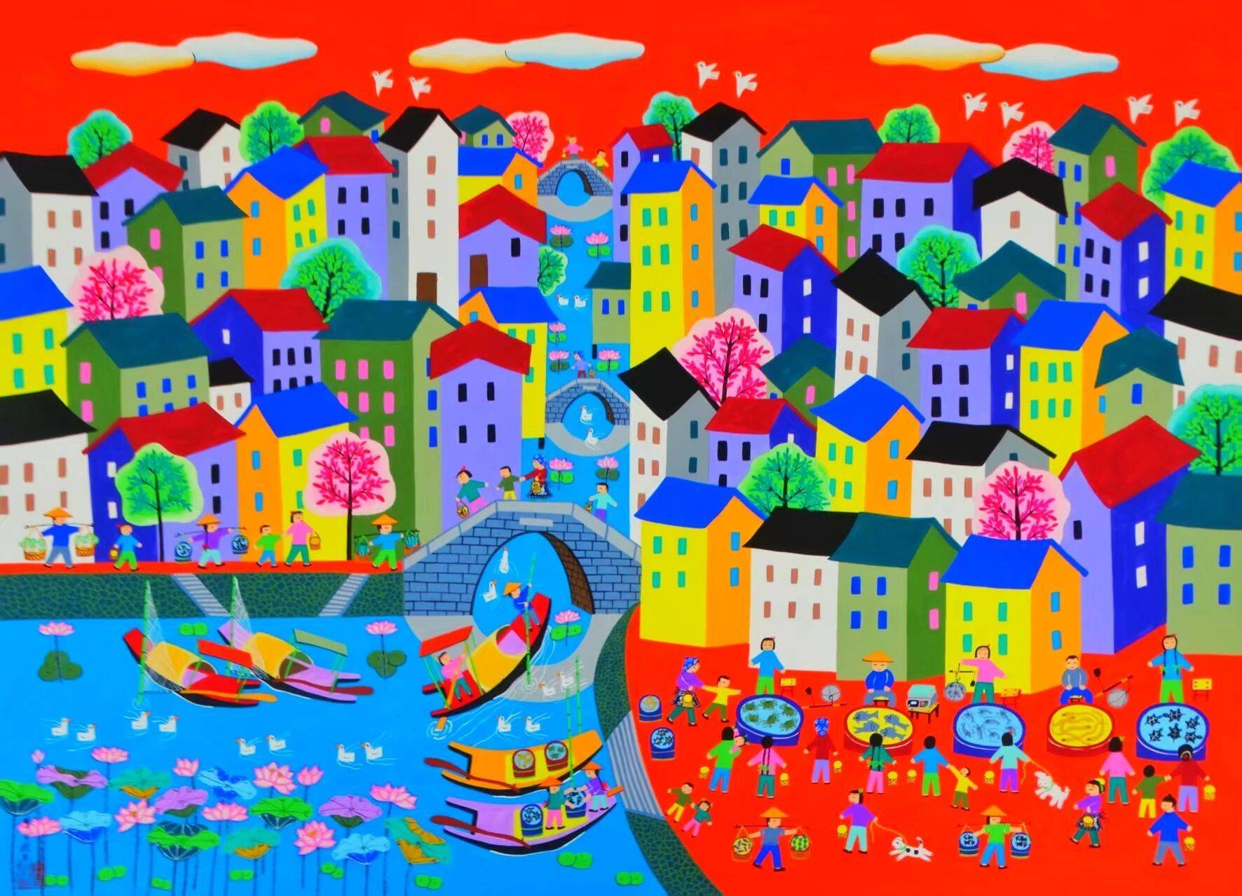 近日,在中华艺术宫举办的首届中国乡土绘画(农民画)作品展圆满闭幕。由金山农民画画家曹金根创作的参展作品《古镇早市》被中华艺术宫列入收藏作品名单。