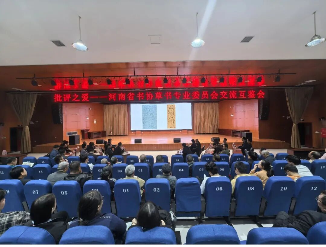 随后,草书委员会还举办了“批评之爱河南省书协草书委员会委员作品交流互鉴会”,围绕“批评与自我批评”展开深入交流。委员们的近作在大屏幕上展示,大家逐一剖析创作思路与心得,并接受互相点评建议,现场气氛热烈真诚、和谐愉快。