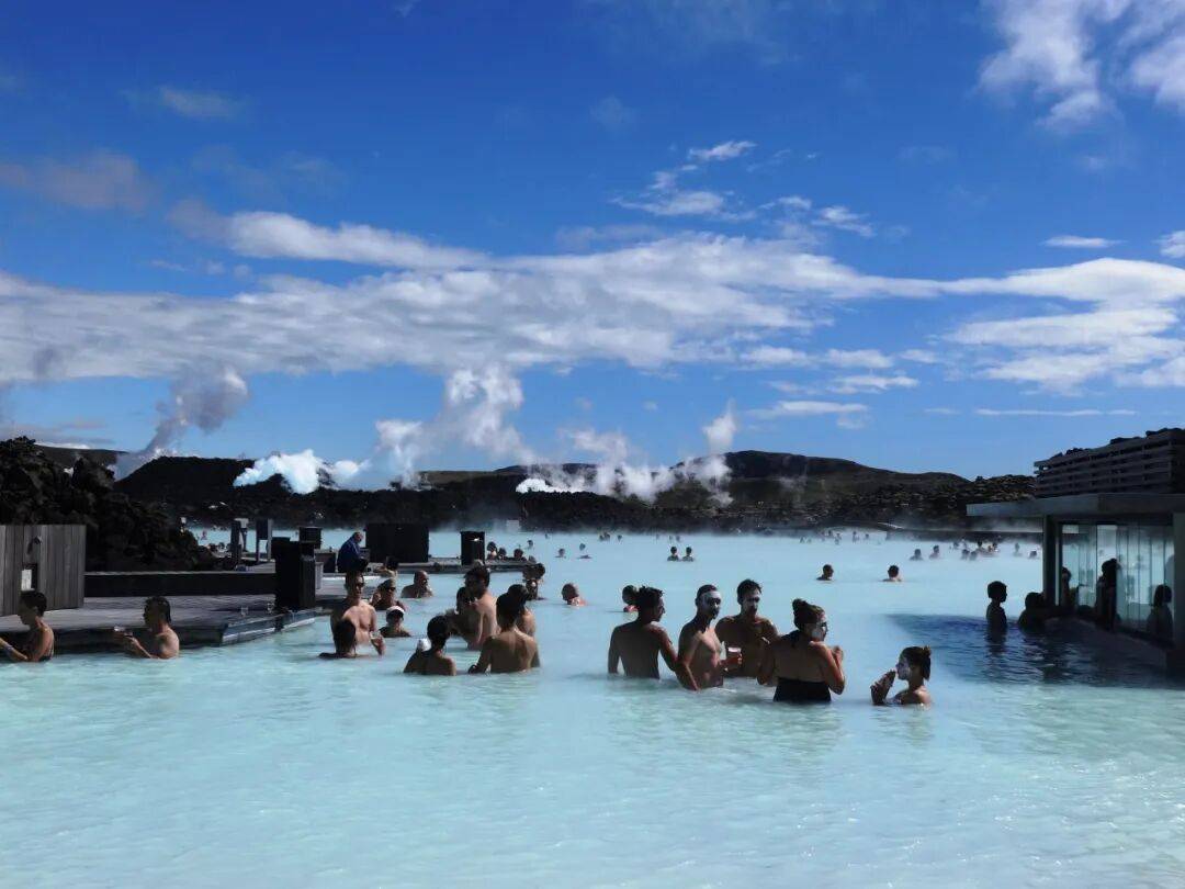 在蓝湖泡温泉是拜访冰岛最津津乐道的开始方式,蓝湖湖底的白色物质是高含量的二氧化硅泥,二氧化硅有护肤作用,当地人把蓝湖当作“天然的美容院”。