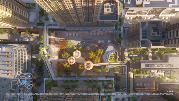 下面则是约4500万方的中央景观,这在寸土寸金的内环堪称“奢侈品”,点缀森感公园、九曲花街、花园大道等景观组团。你从高线公园俯瞰,三个“树屋中心商业”穿插其中,整个景观很立体,层次感很强。