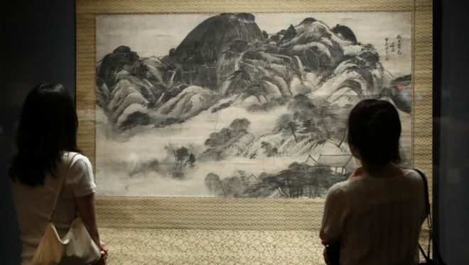 李健熙藏品展中首次公开的韩国国宝第216号《仁王霁色图(인왕제색도)》,图片来源:Yonhap News